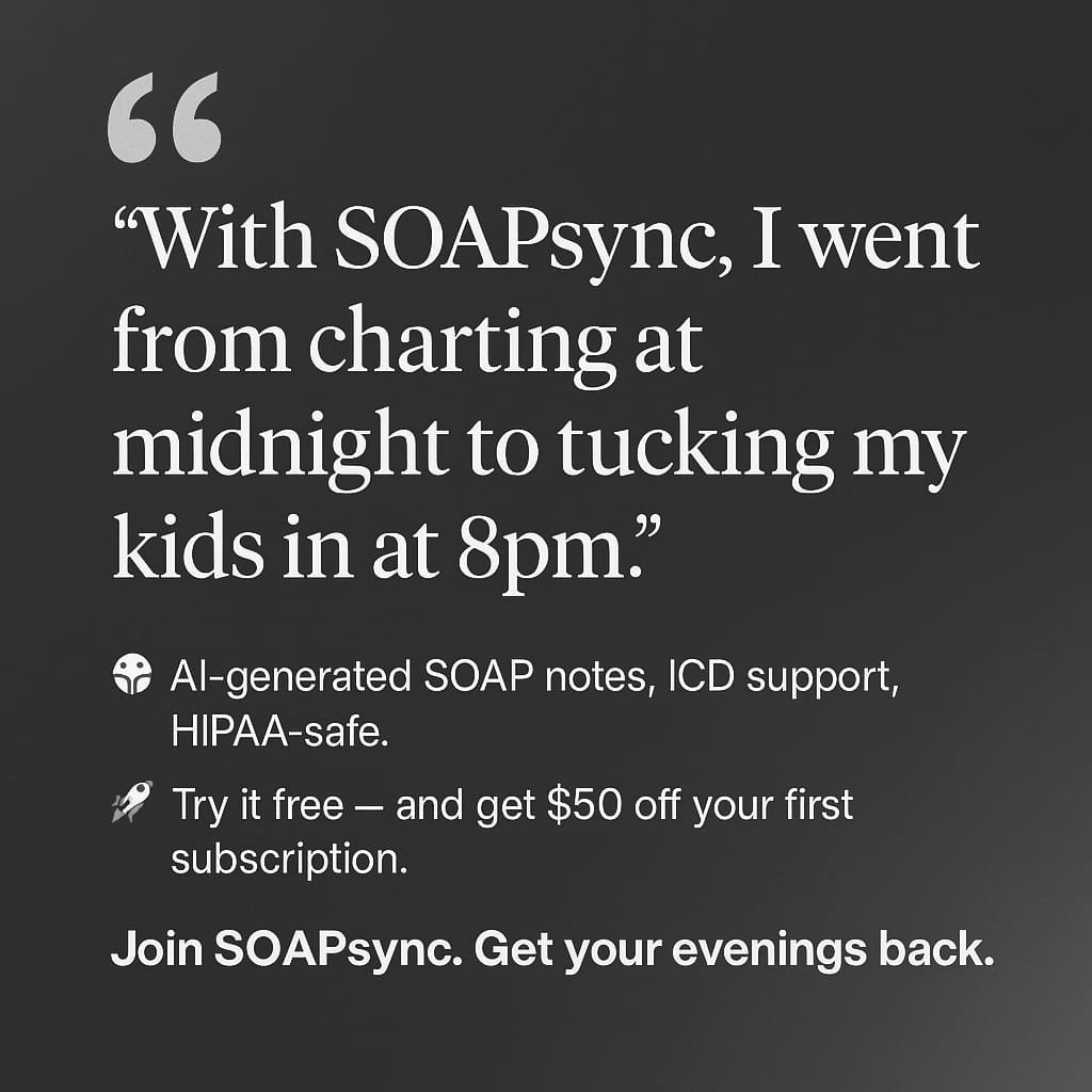 SOAPsync helps psychiatrists and Mental Health Nurse Practitioners reclaim their emotional bandwidth with smarter SOAP notes built for balance.