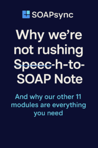 One of our most ambitious innovations, the Speech-to-SOAP Note Module, has been in development for some time. We recognize the appeal: speak freely during a session, and get a fully structured, compliant SOAP note in return. But here’s the reality…
